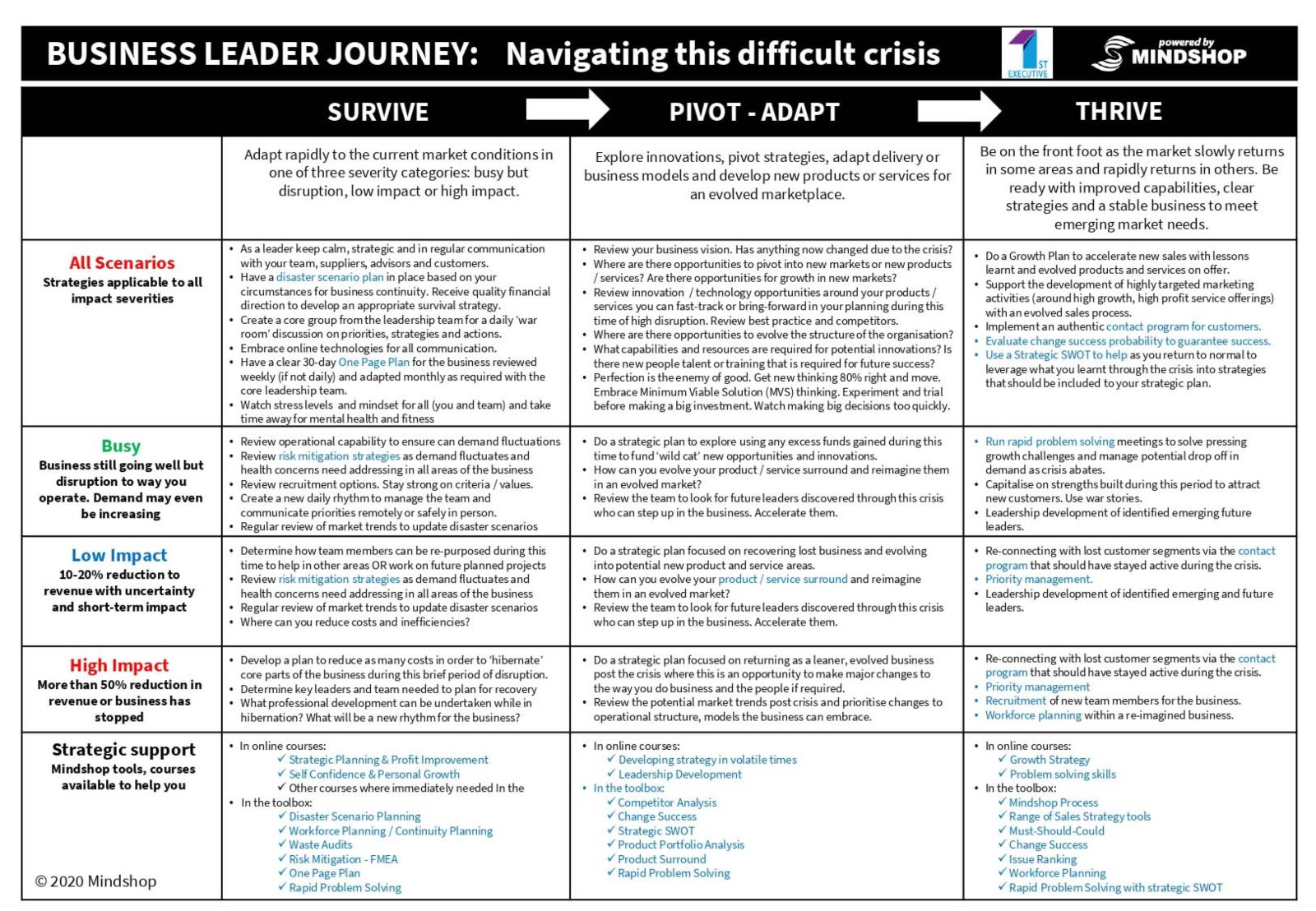 Working through the Pivot stage of your Survive – Pivot – Thrive roadmap, there is no doubt that over time your businesses Strengths and Weaknesses may change a little. In the short term, that may be barely noticeable. However, what is guaranteed, and what you have already seen is that the Threats and Opportunities will change frequently, very quickly and sometimes quite dramatically.